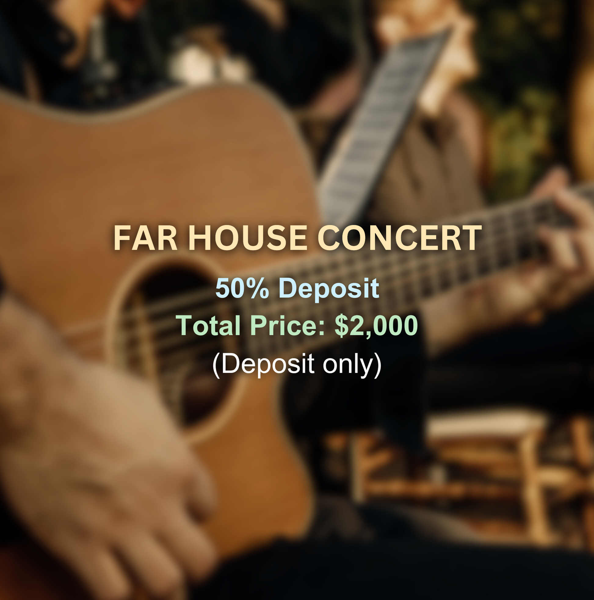 Far concerts apply to locations outside the designated travel radius shown on the house concert map (within the continental U.S.).